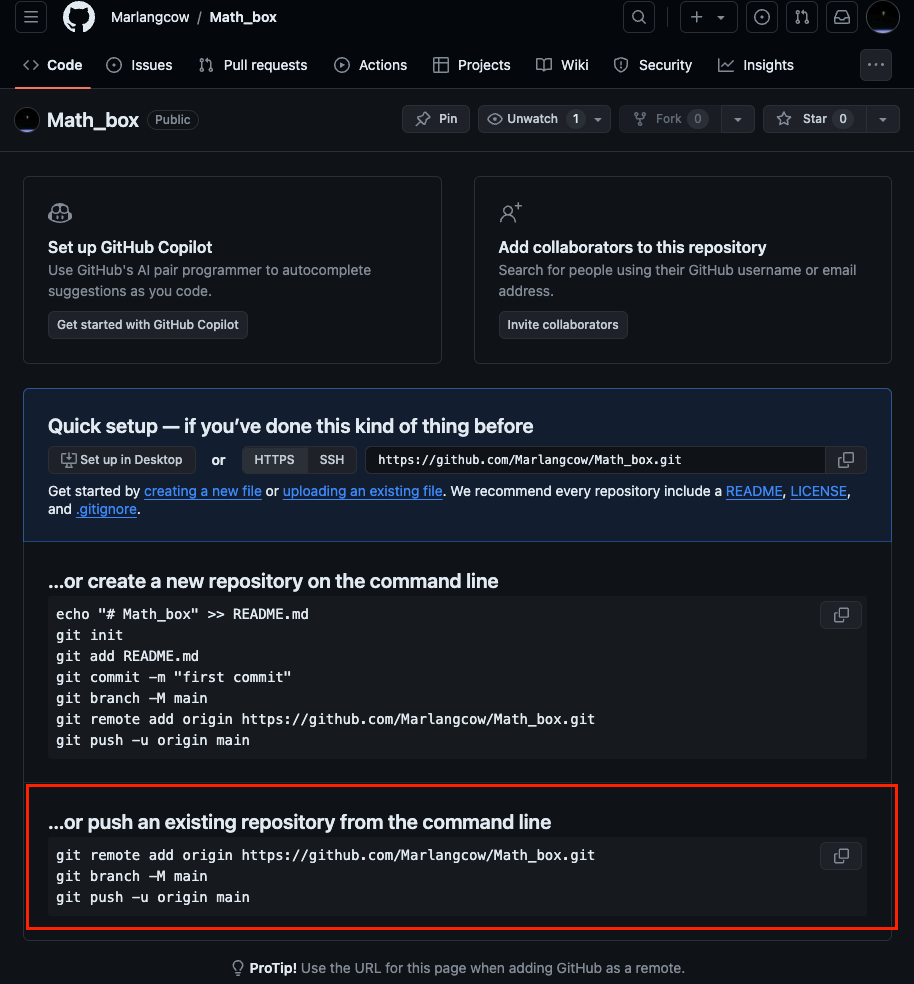 2. 이미 만든 로컬 레포지토리를 깃허브에 업로드 하기