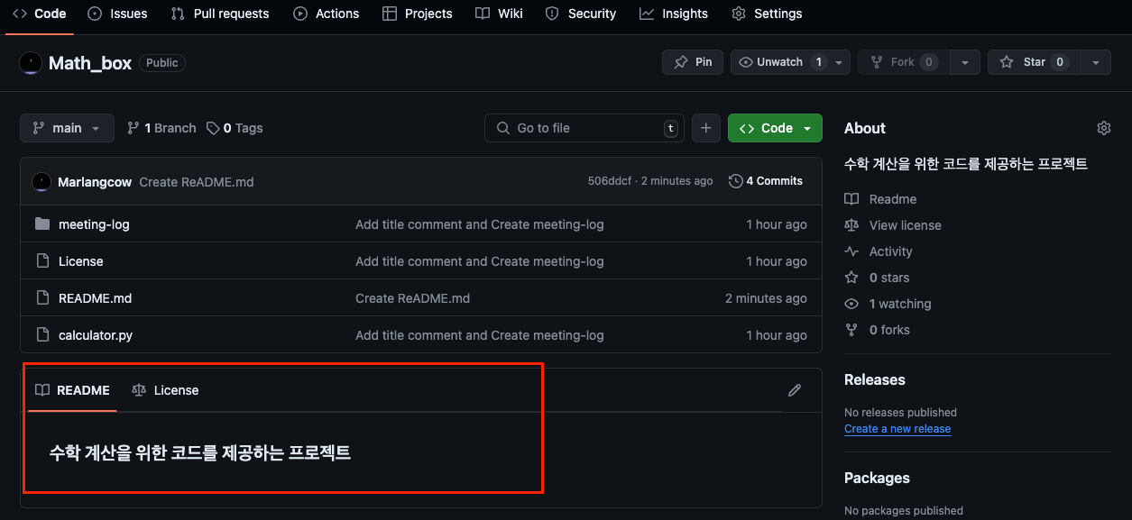 1. 리모트 레포지토리에서 README.md 내용 수정
