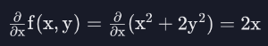 결국 남는 건 $2x$ 이므로 함수 f를 $x$ 에 대해서 편미분하면, $2x$가 나오게 된다.