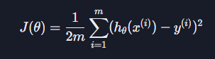 여기서 계산의 편의를 위해 평균 제곱 오차를 2로 나눠주면 손실 함수 J(θ)가 나온다.