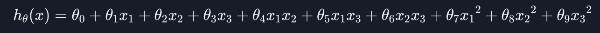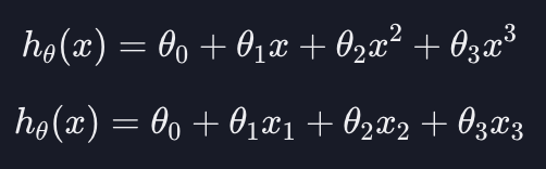 여기서 위에는 다항 회귀의 가설 함수고, 밑에 있는 건 입력 변수가 3개인 다중 선형 회귀의 가설 함수인데 거의 비슷하게 생겼다.