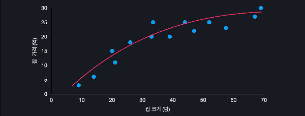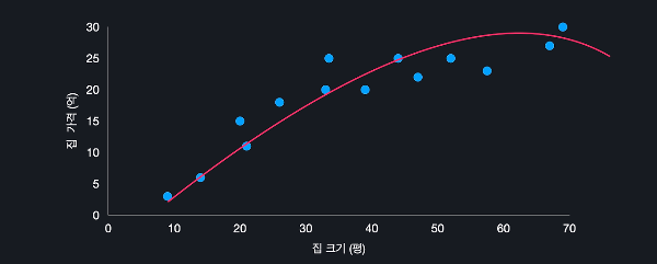 예를 들어서, 데이터에 가장 잘 맞는 곡선이 이차 함수일 것 같으면 이런 식으로...