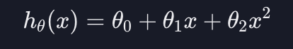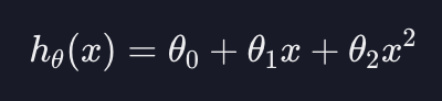 이차 함수니까 제일 큰 항이 이차항이어야 하므로 가설 함수에 상수항, 일차항, 이차항... 이렇게 있는 것이다. 만약 가설 함수가 삼차 함수라면 삼차항까지 있을 것이다.