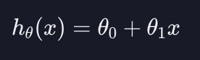 크기를 이용해서 집 가격을 예측한다고 합시다. 선형 회귀에서 가설 함수는 이렇게 생겼습니다.