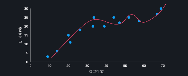 함수의 차수가 더 높을수록 더 굴곡이 많은 곡선인데, 우리는 데이터를 보고 적합할 것 같은 모양을 골라야 한다.