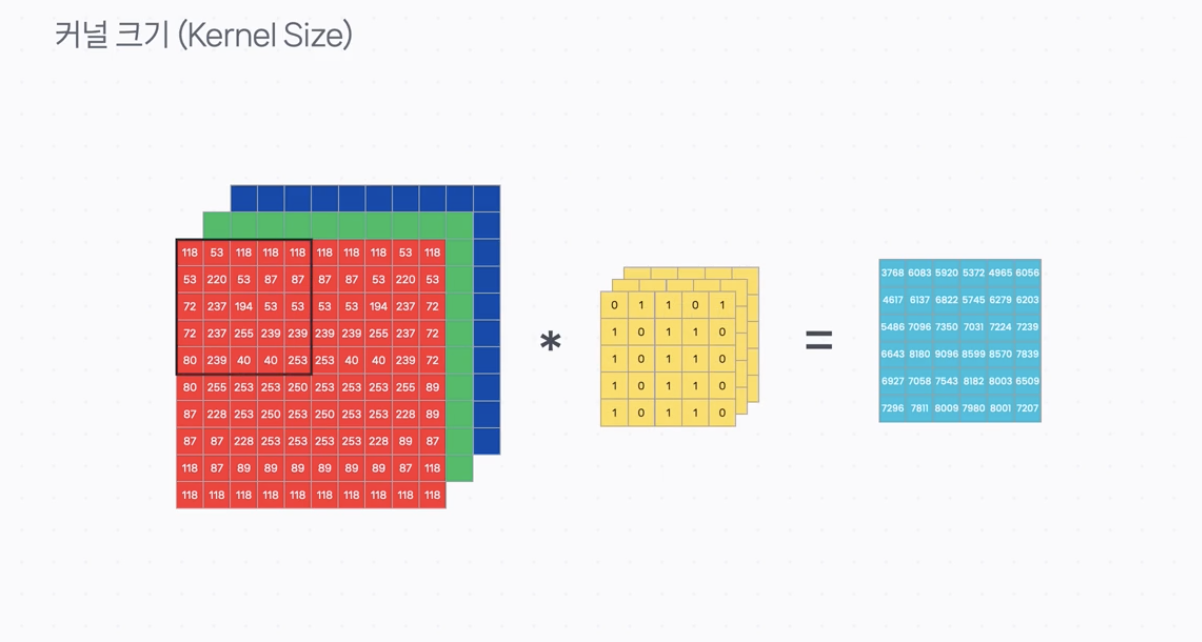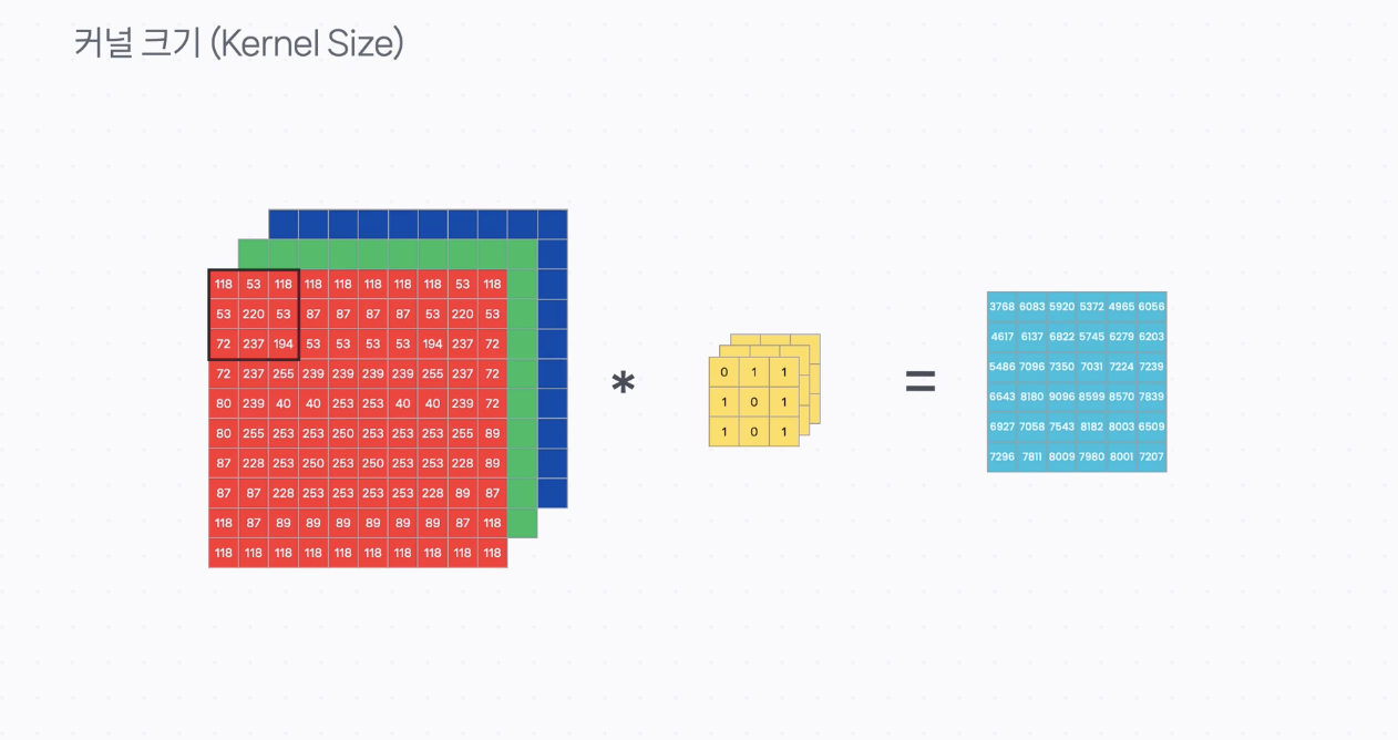 이러한 Convolution Filter의 크기를 바꿀 수도 있는데 이를 커널 크기(Kernel Size)라고 부른다.