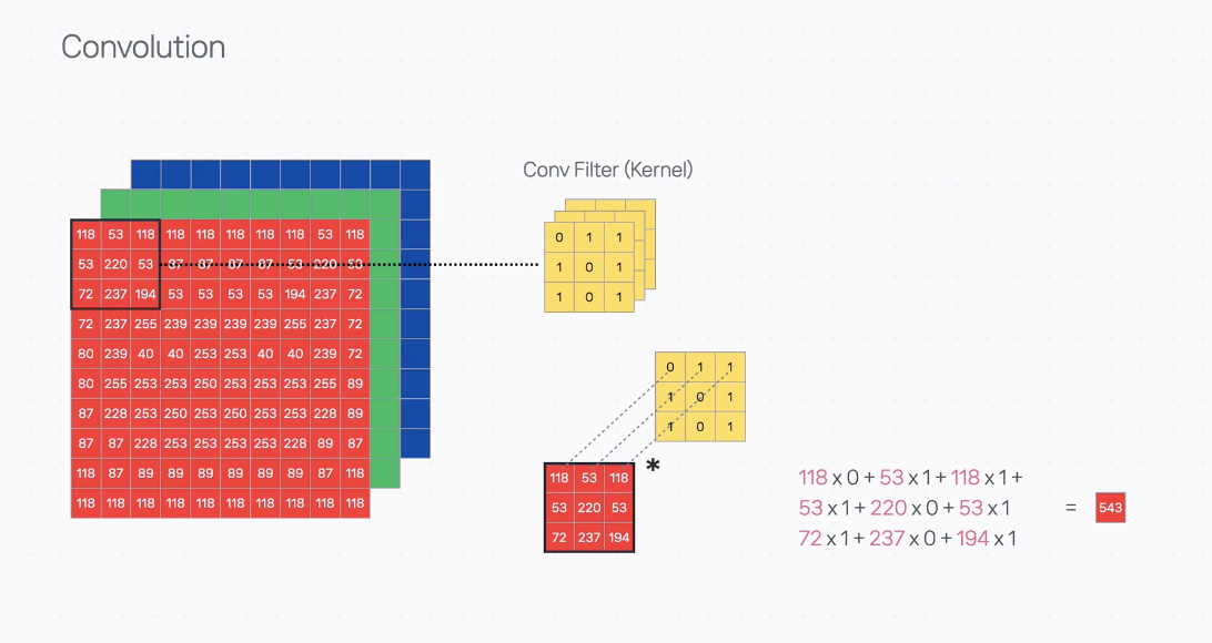 간단히 말하자면 입력 데이터에 Kernel이라고 불리는 필터를 적용해서 값을 계산하는 과정이다.