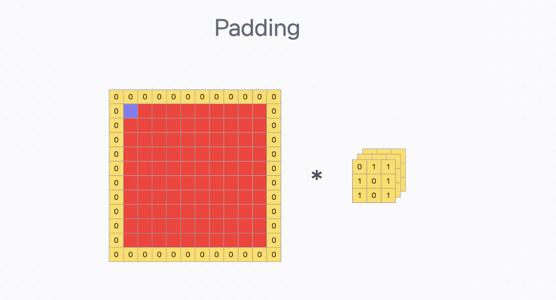 1) Feature Map이 원래 입력 이미지보다 작아지는 문제와 2) 특성에 반영되는 횟수 불균형의 문제를 해결하기 위해 이미지 가장자리에 임의의 값들을 채워 넣는 Padding 이라는 방법을 사용한다.