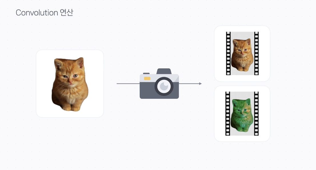 필터는 카메라의 렌즈와 비슷한 역할을 하는데, 카메라 필터는 렌즈앞에 씌워서 센서에 맺히는 상에 변화를 주는 역할로 어떤 입력이 필터를 통과하면 변형을 가하여 조금 바뀐 결과물이 나오는 것이다.