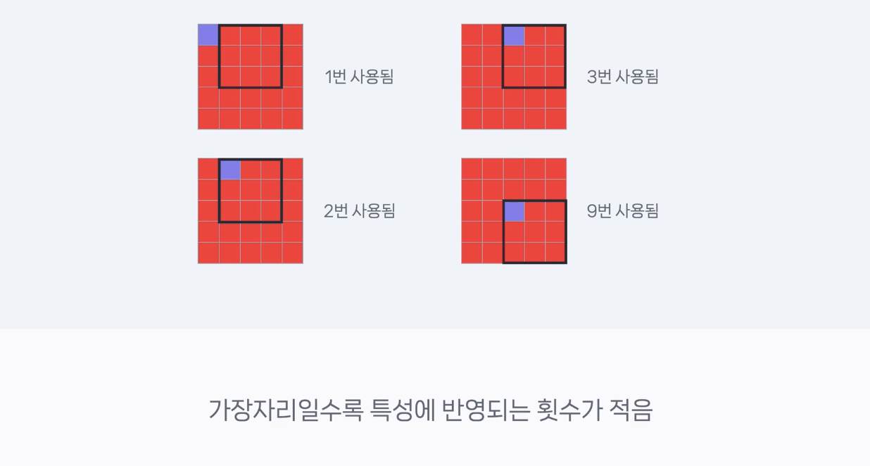 이처럼 이미지 가운데보다 가장자리 정보는 상대적으로 덜 반영될 수 밖에 없다.
