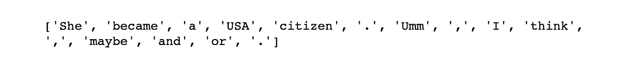 text = "She became a US citizen. Ummmm, I think, maybe and or."