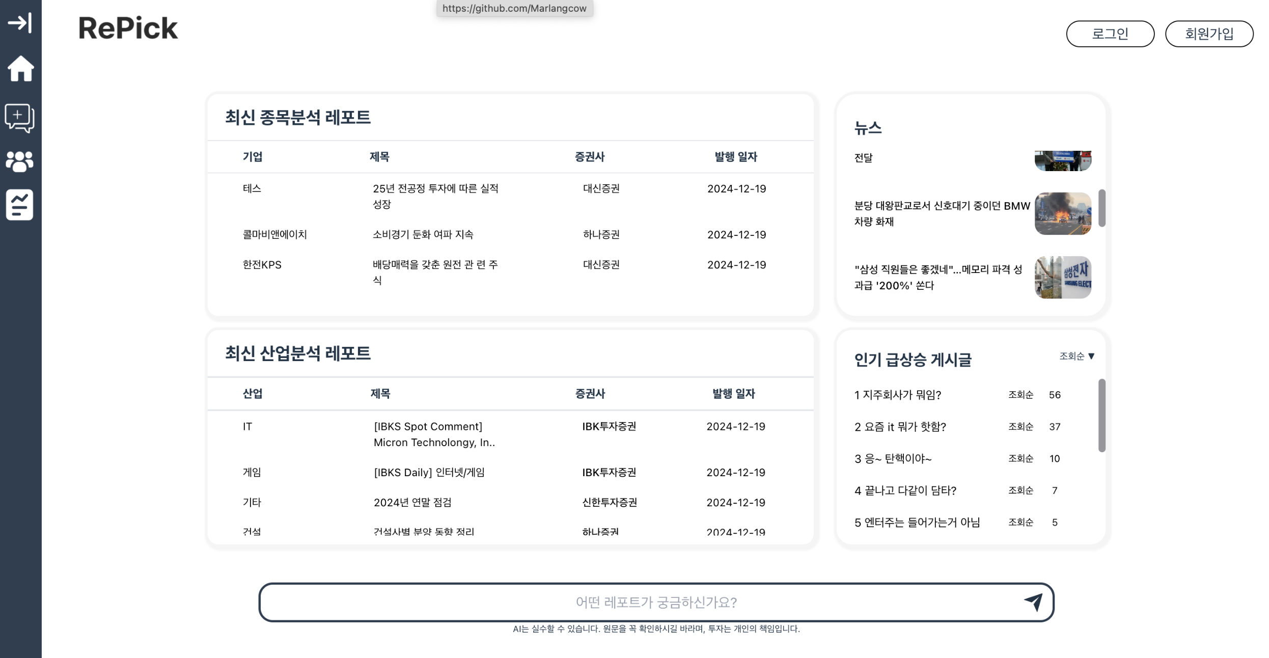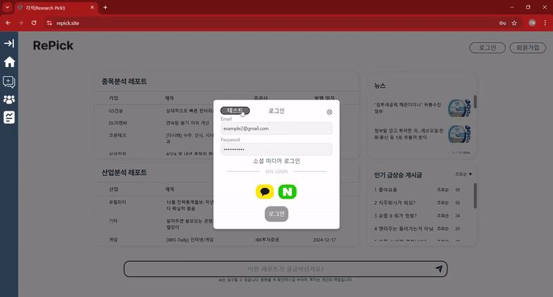 메인페이지에서 로그인 전/후에 따른 레포트가 다르게 나타난다.